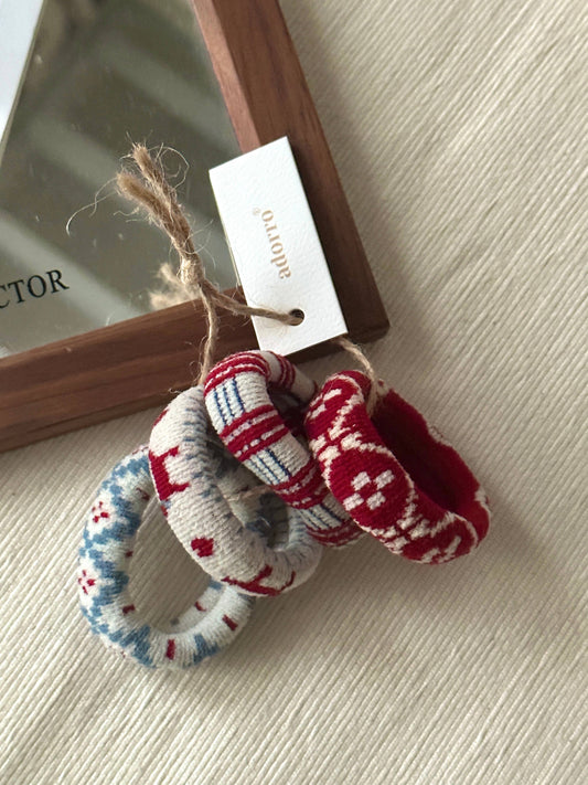 Winter Patterned Thick Seamless Hair Ties (Set of 4)
