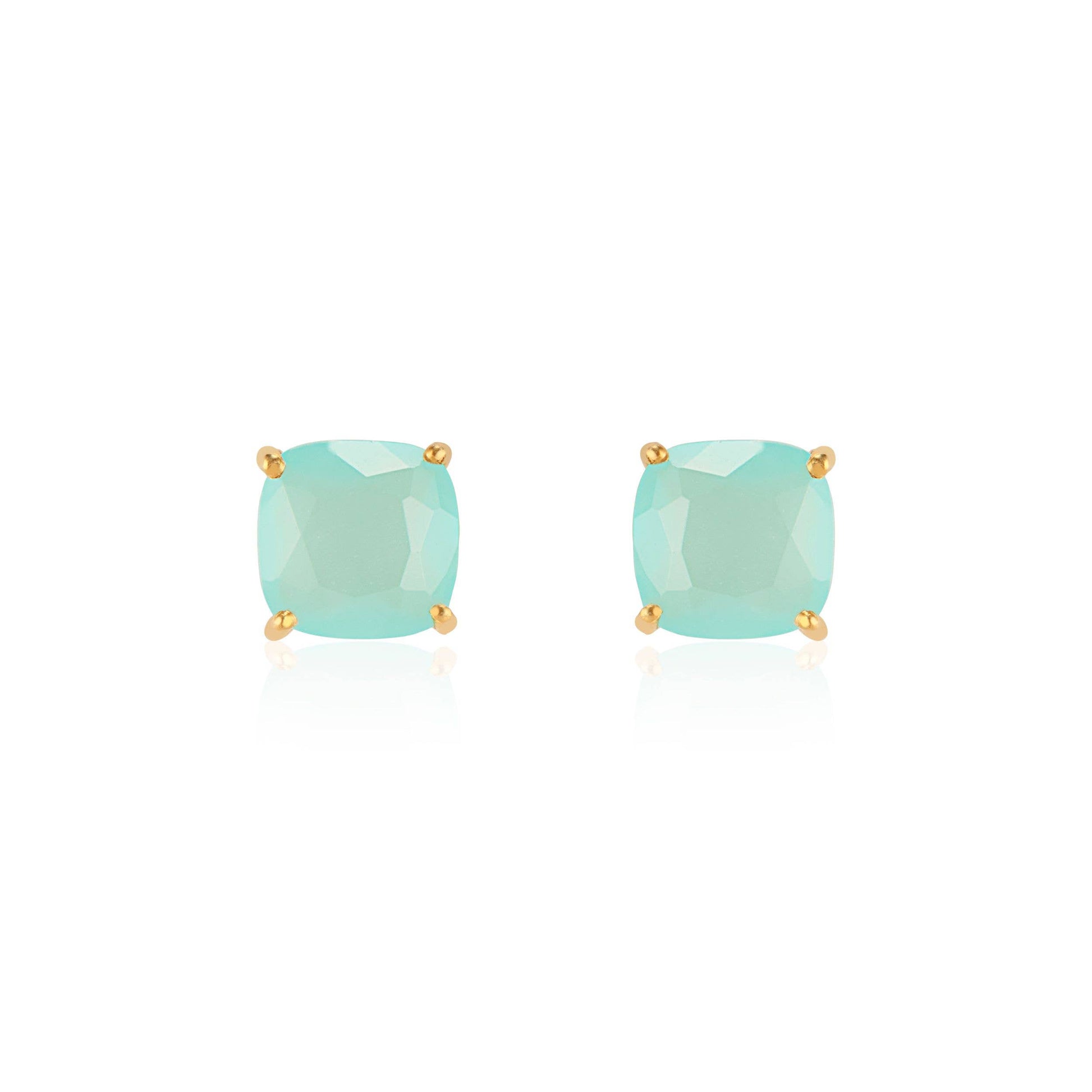 Each stone is cushion-cut and secured with a classic four-prong setting, allowing the natural radiance of the chalcedony to shine. Their versatile size makes them easy to wear every day, whether styled solo or paired with your favorite hoops.