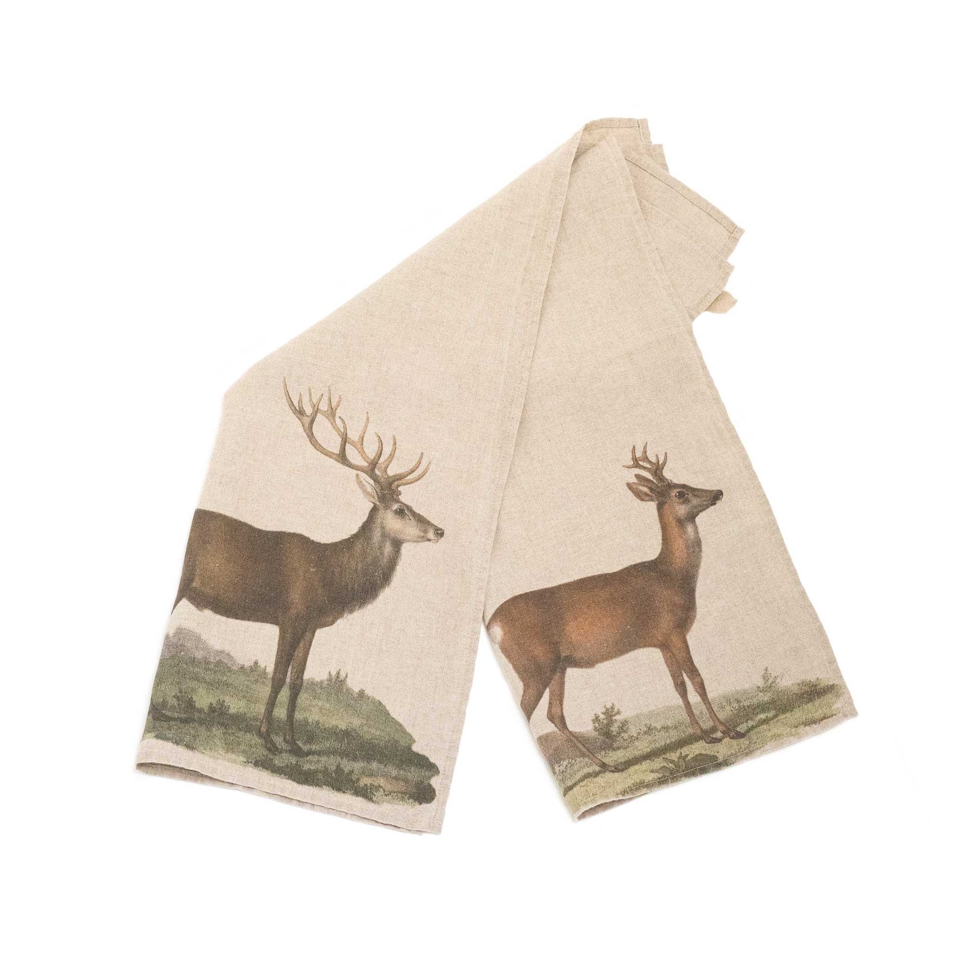 Bring a touch of woodland elegance to your kitchen with the Deer & Roe Linen Tea Towels. This set of two features beautifully illustrated deer and roe deer motifs, inspired by peaceful forest landscapes. The classic design and earthy tones make these towels a charming addition to any home—perfect for everyday use or as a thoughtful gift.