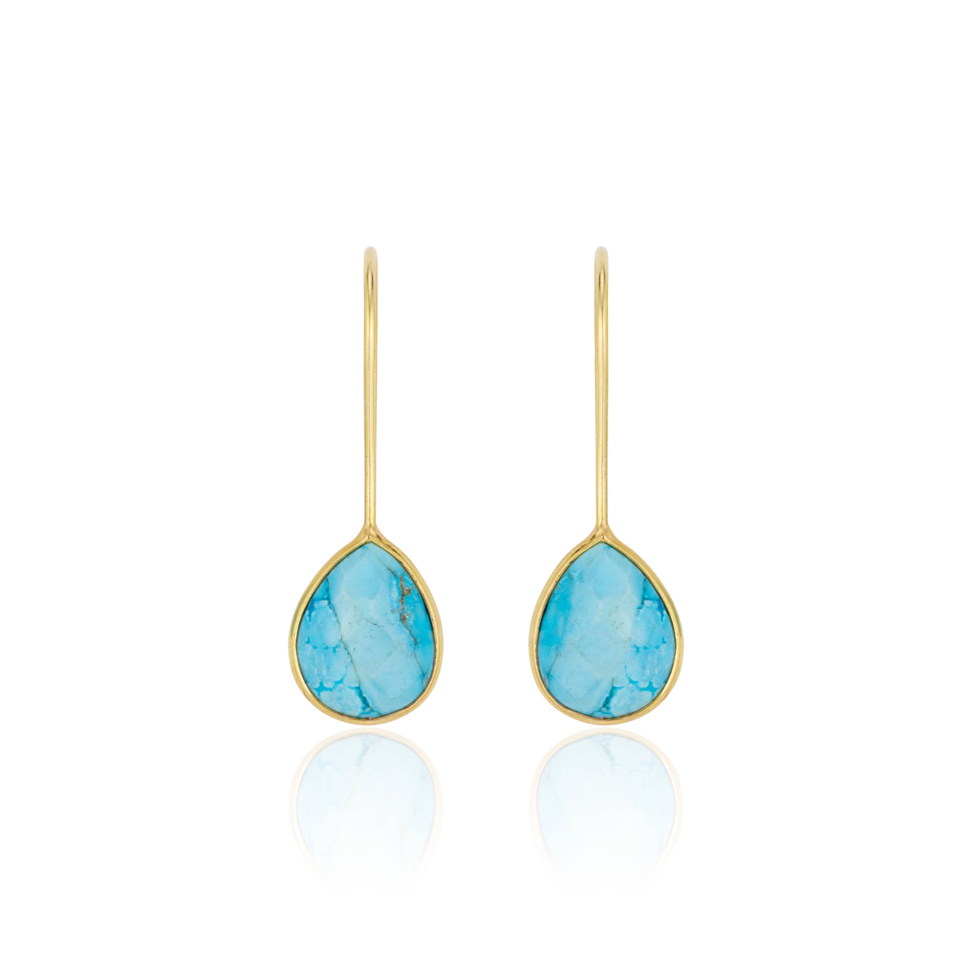 Natural turquoise semi-precious gemstone teardrop earrings set in 14K gold vermeil.