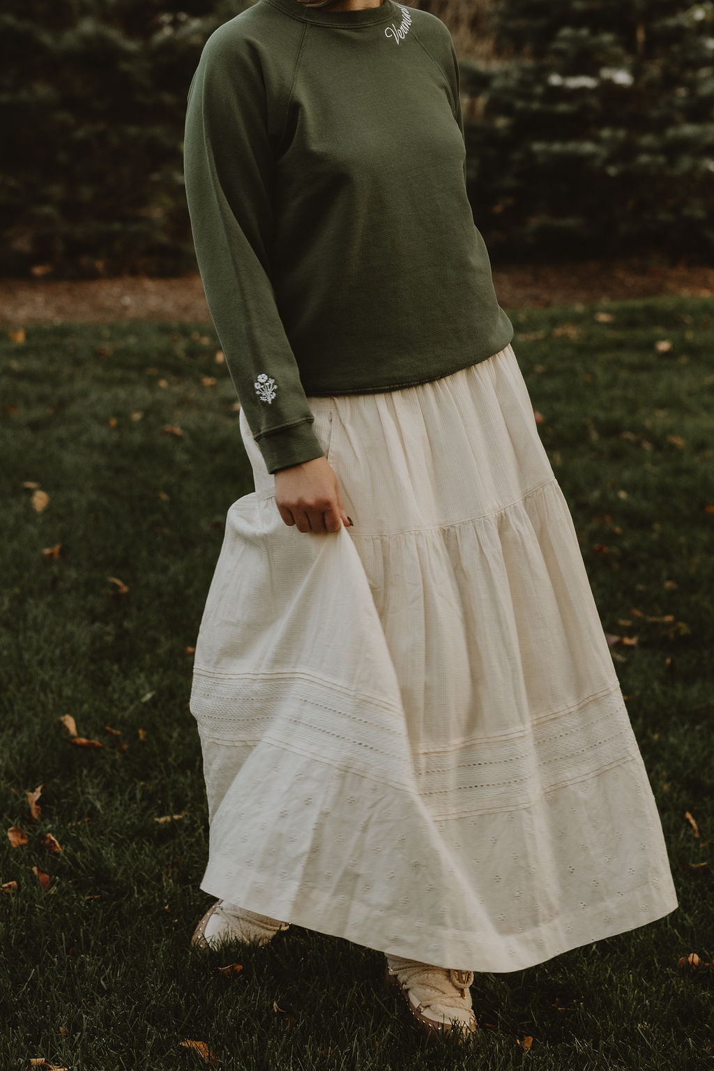 Vermont Embroidered Sweatshirt Green with Floral Embroidered Sleeve