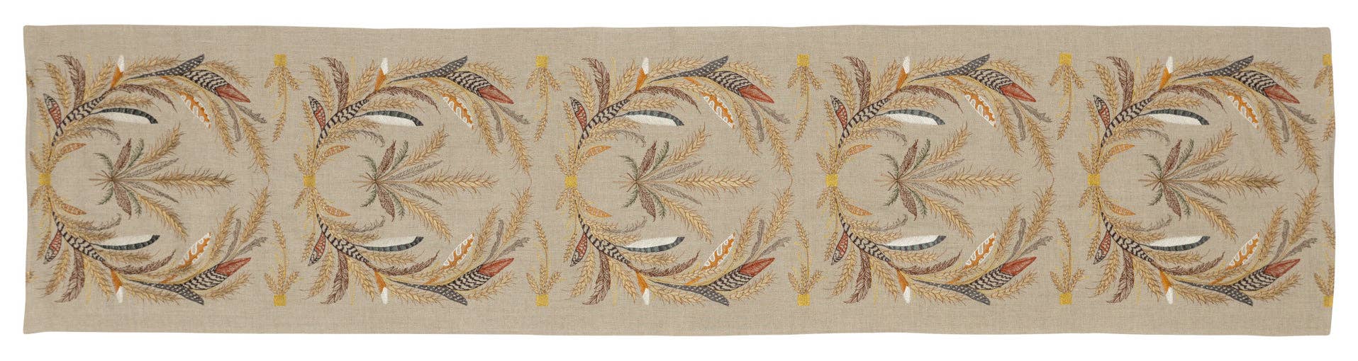 76" × 18” (193 cm × 45 cm) — the Embroidered Wheat Harvest Table Runner fits a variety of table sizes. Its rich autumn palette and artisanal embroidery ensure it will be a treasured part of your seasonal décor for years to come.
